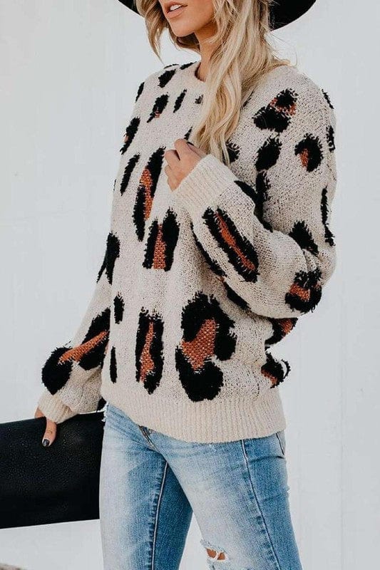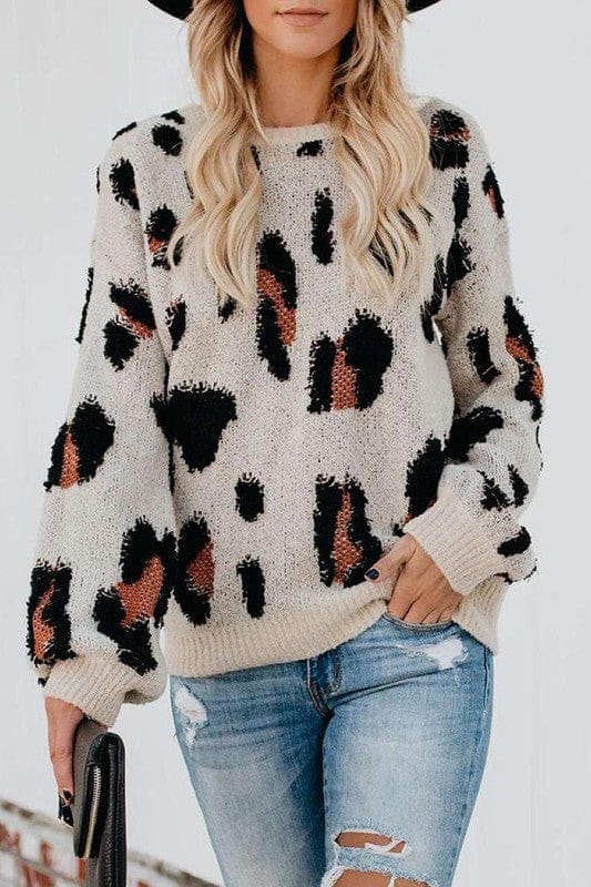 Cheetah Round Neck Knit Sweater