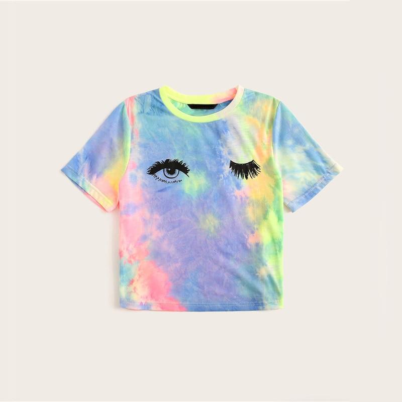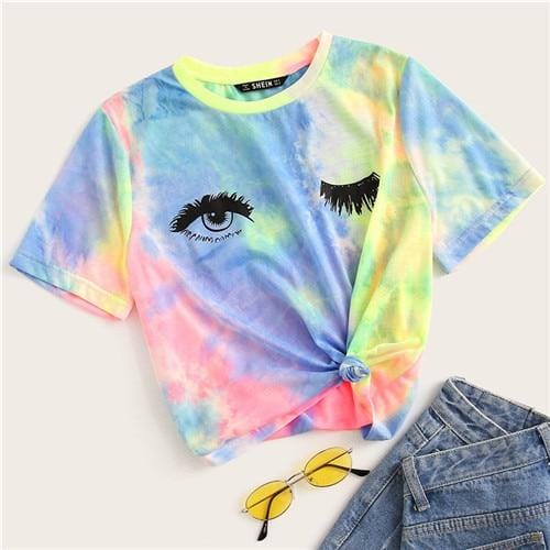 Multicolor Tie Dye Eye And Eyelash Print T Shirt